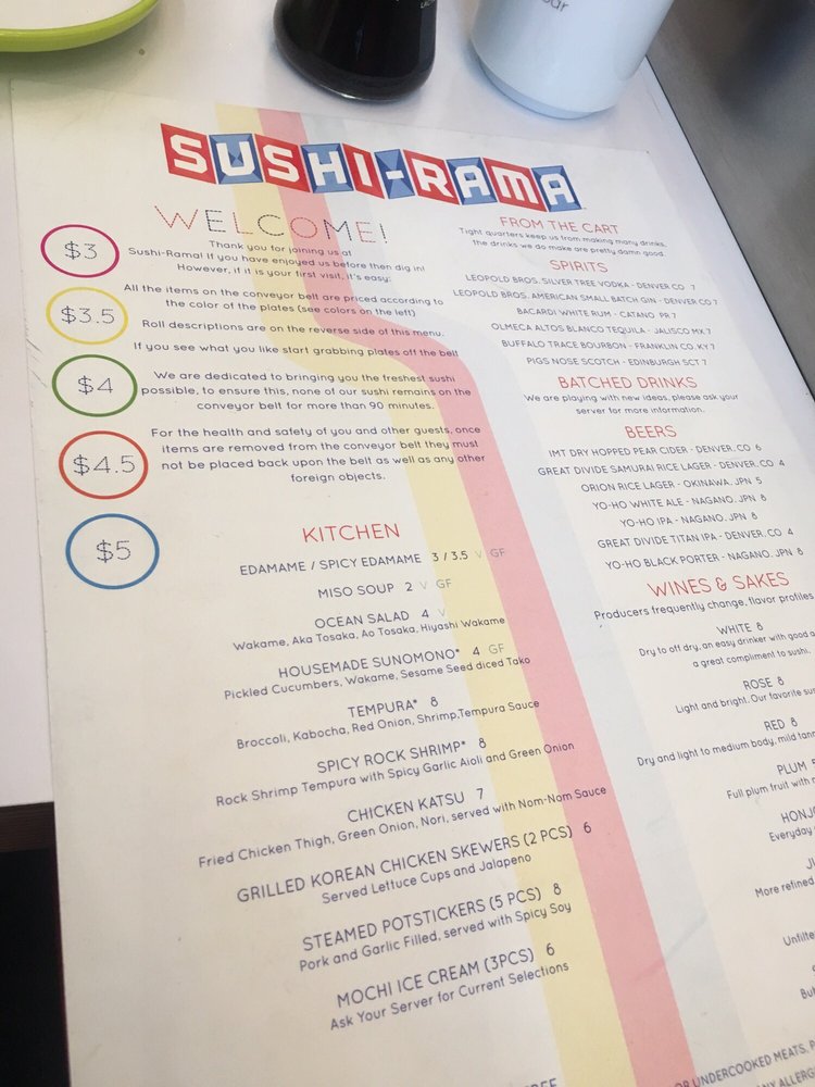 Introducing Sushi-Rama RiNo, a vibrant conveyor belt sushi spot in Denver's RiNo district. With a trendy, casual atmosphere, this Asian-owned restaurant offers a unique dining experience. The menu features a variety of nigiri, 2-piece rolls, and kitchen items, all with options for vegetarians. Highlights include the Ebi Shrimp nigiri, Dragon Roll, and Pork Gyoza. Customers can enjoy their meal while watching the sushi glide by on the conveyor belt or order freshly prepared items from the kitchen. The pricing is affordable, with most plates ranging from $2.75 to $4.75. While some reviews mention mixed opinions on sushi quality, the overall consensus is a fun and enjoyable experience. Whether you're a sushi enthusiast or looking for a new dining adventure, Sushi-Rama RiNo offers a lively setting for trying a variety of flavorful dishes.